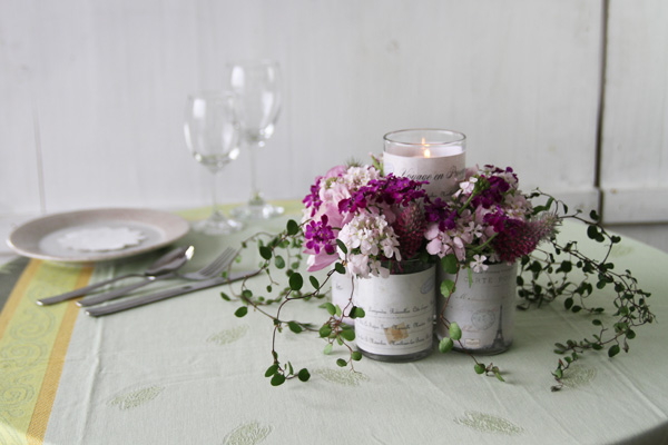 豊かな自然な花々、キャンドルの優しい明かりに包まれながら楽しむ、ガーデンパーティーによく似合うフラワーポット。