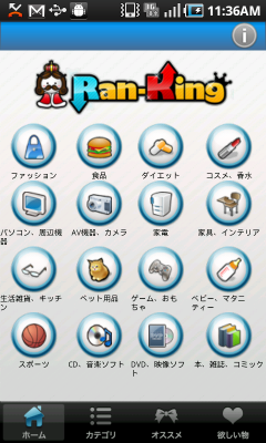 「Ran-King」は、インターネット通販で取り扱われる約1,800万アイテムの中から、人気商品をランキング形式で紹介するアプリケーションです。ユーザーは気になった商品をその場で手軽に購入することができます。