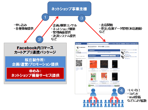 販売にあたり、Facebook上のソーシャルコマース(※1)開業・運営支援事業を展開する桜丘製作所株式会社(本社:東京都渋谷区桜丘 代表者(Social Commerce Consultant):宮坂友大 以下、桜丘製作所)と提携し、 桜丘製作所が、ソーシャルコマースに関するコンサルティング営業を、ゆめみは技術側の支援をする、「Facebook内コマース カートアプリ連携パッケージ」を3月31日より販売いたします。