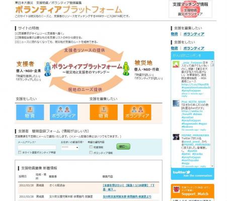 被災地のニーズと、支援者のリソースをマッチングさせる本サイトにて、