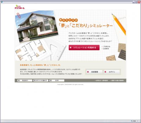 「アエラホーム」ブランドで注文住宅を販売するアエラホーム株式会社(以下:アエラホーム 山梨県甲府市/代表取締役社長 中島鷹秀)は、4月1日よりインターネットによる住宅建築シミュレーションサイト『「夢」と「こだわり」シミュレーター』(http://www.aerahome.com/simulator/)を開始いたします。