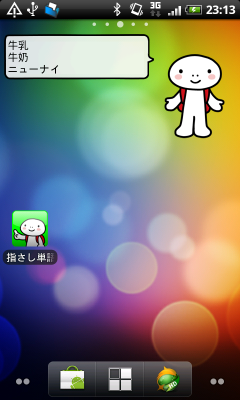 ウィジェットの構成は、テキスト部分とキャラクター部分に分かれており、テキスト部分をタップするとランダムで表示内容が変わり、キャラクター部分をタップすると設定画面が表示され、現在の習熟度(タップ回数に対応)の表示他、ウィジェットキャラクターをセレクトすることが可能です。