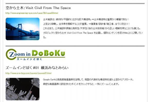このような主旨に基づき、『空から土木:Visit Civil from the Space』を企画/公開しました。社会基盤施設/Infrastructureの利用者、高校生/大学生(都市工学を目指すエンジニア予備軍)にも、土木工学/Civil Engineeringの醍醐味と魅力を伝えたい。