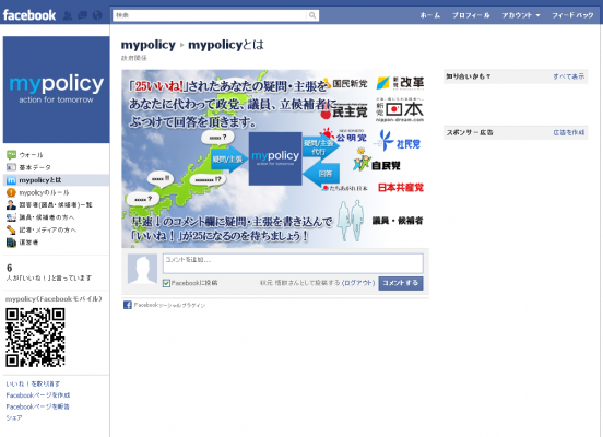 株式会社blue noteは、facebookページ「mypolicy」自体の「いいね!」数を国民の mypolicy への支持率と捉え、2011年10月末までに「いいね!」数1,000を獲得できるサービスを目指します。