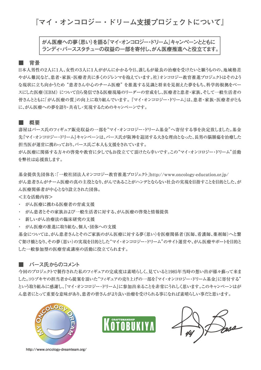 ※本商品の収益の一部は、バース氏も全面的に支援している「マイ・オンコロジー・ドリーム基金」に寄付されます。