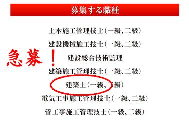 また、これまでも募集を行ってきた土木施工管理技士をはじめとした、一級建築士以外の土木・建築関連人材も、引き続き募集しています。