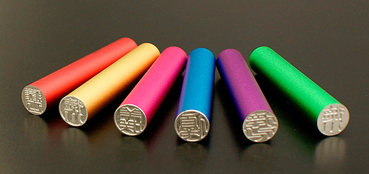 カラーメタル印鑑『HANTONE』は、印鑑の素材にアルミニウムを使用した、まったく新しい発想の、ハンコヤドットコムオリジナル商品です。