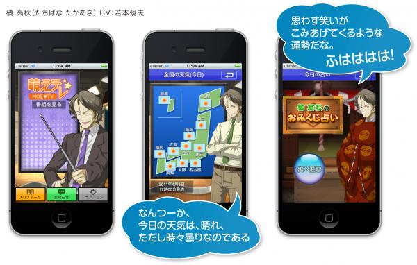 「萌えテレ」は、人気声優達が演じる個性的なキャスターが、朝のテレビ番組のように毎日の天気予報と占いをお伝えする音声アプリです。