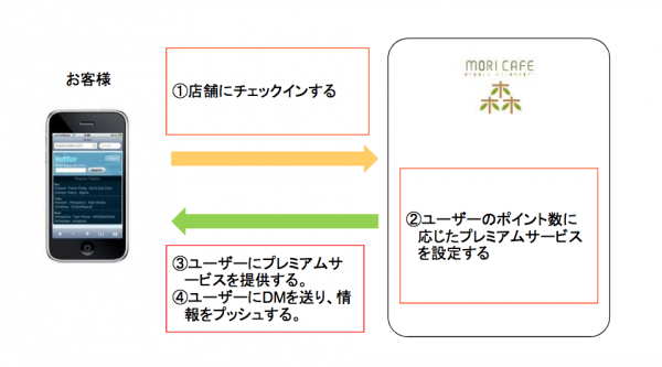 今回のスマートフォンの位置情報(GPS)とツイッター(twitter)を活用した、チェックイン型CRMサービス「ツイートポン(tweetpon)」は、大きく「既存顧客の来店頻度の向上」と「新規顧客の獲得」の2つの特徴を持ちます。