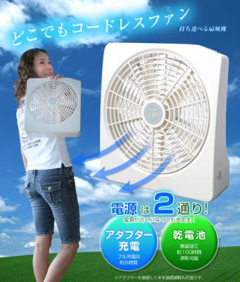 株式会社わがんせ(所在地:愛知県名古屋市中村区亀島2-29-17 代表取締役 金田弘克)は、AC電源から充電して約7時間稼動する『どこでもコードレスファン』の5月発売を発表。1.3kgの薄型軽量タイプで持ち運びに便利で屋外でも使用できる。電源は3通りから選択できる。メーカー希望小売価格は\8,800(税込)。
