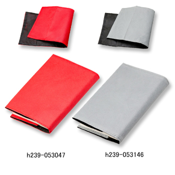 不織布製のブックカバーは、黒/赤、黒/グレーのリバーシブル。気分に合わせて使い分けることができます。