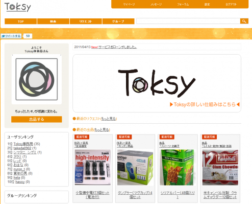 グループを作ってToksyの輪を広げて下さい。