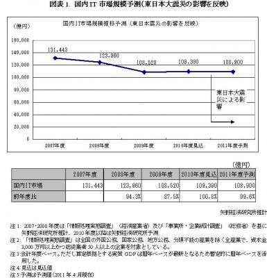内閣府では実質GDPの減少を最大2.75兆円とした上で、復興需要によりGDPは減少分を考慮しても増加するとしているが、IT市場に対してはその効果は限定的と考える。