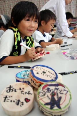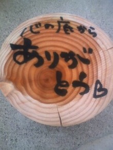 当日、地元わんぱく会の子供達が書いたヒノキをオープン前