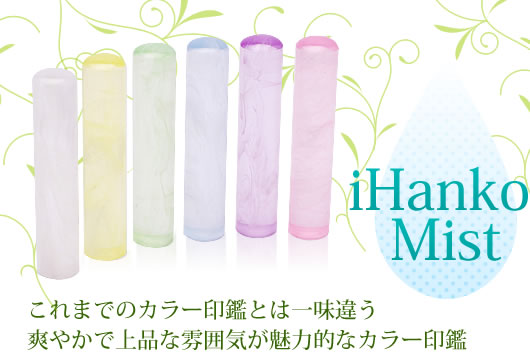 新商品『iHanko Mist(アイハンコ・ミスト)』は、これまでのカラー印鑑とは一味違う、上品で飽きのこないカラー印鑑です。