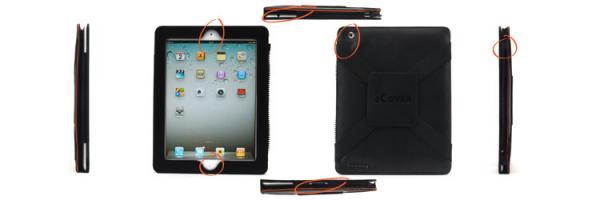 zCover GloveOne (レザー調、ハンドストラップ付き) は、iPad2 の全てのコントロールボタンをケースをかけたままの上体で使うことが可能です。
