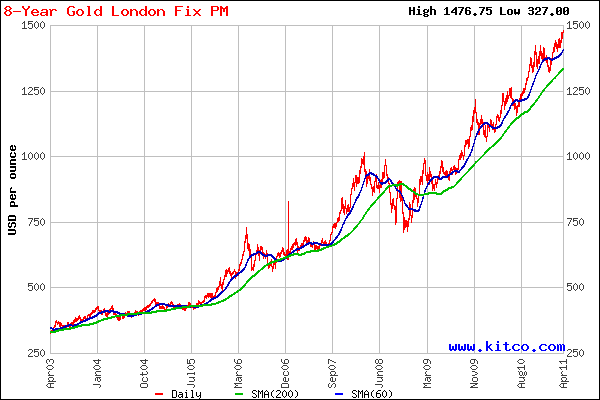 世界的に最も信頼性の高い金(ゴールド)統計会社のGFMS(ゴールド・フィールズ・ミネラル・サービシズ社)のゴールドサーベイ2010のなかで―2011年のレンジは 1319ドルー1620ドル、年平均 1455ドルと予測している。