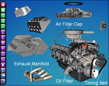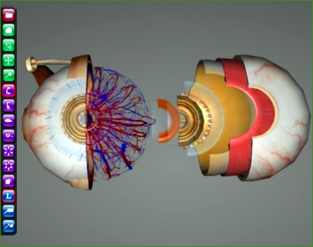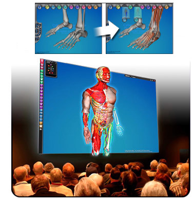 マウスによる簡単な操作により、通常の解剖や実験では見ることのできない生物の器官や内部構造を、仮想的に様々な角度から、また様々な大きさで見ることができます。 例えば人体モデルの場合、外部の皮膚から内部の骨、筋肉、内臓などいくつかのレイヤーに分けて表示することもできます。