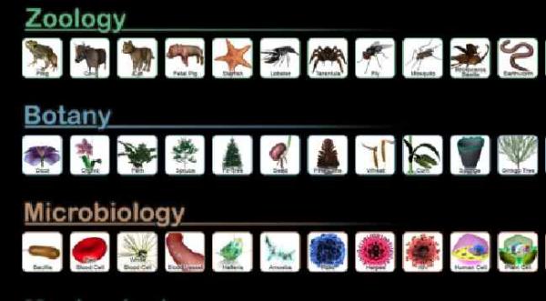 3Dモデルは、人体解剖学、植物学、動物学、生物学など9種類のカテゴリーに分類されます。