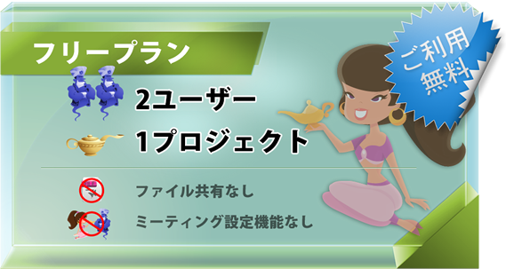 フリープランでは、進捗管理の機能はほとんどそのままご利用可能で、ミーティング設定/ファイル共有/ユーザー数/プロジェクト数に制限があります。
