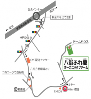 または八街駅よりちばフラワーバスで15分(都賀線神田西組下車)