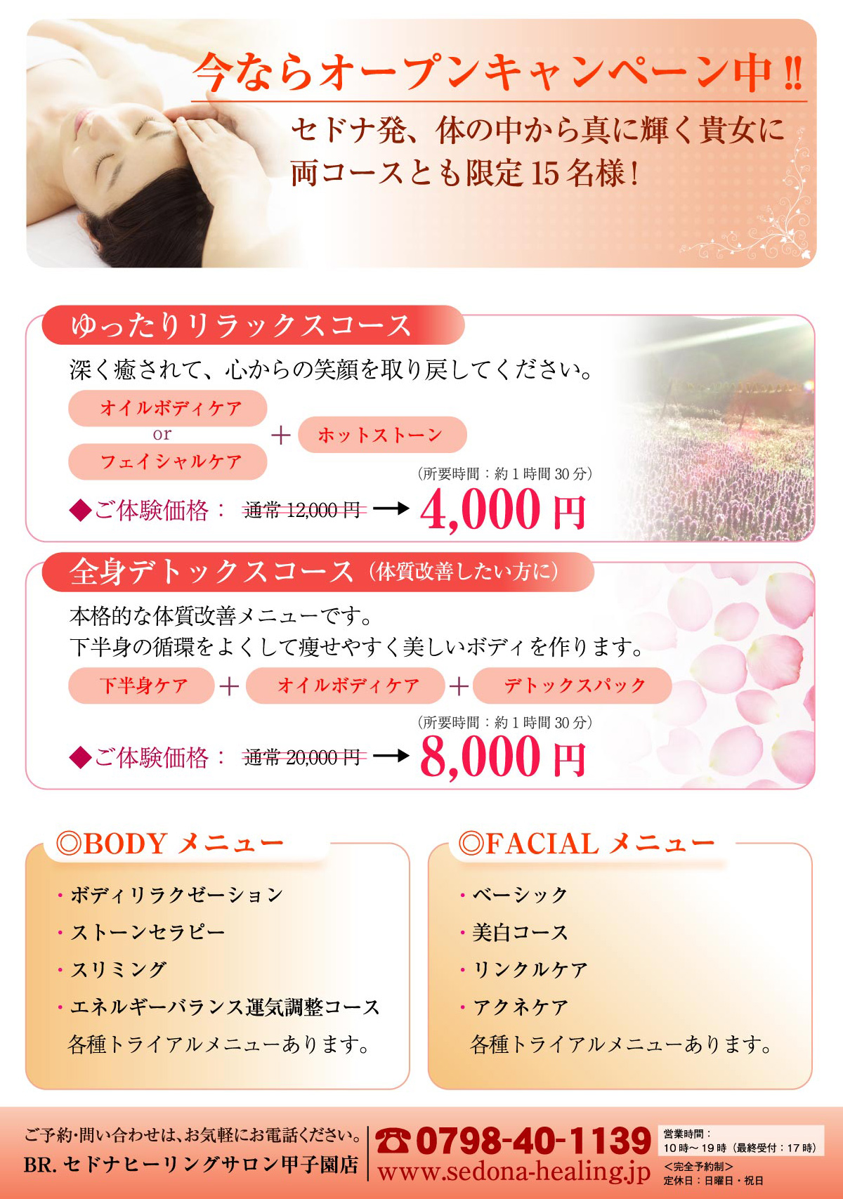 ◆◇◆BR.セドナヒーリングサロン甲子園店オープニングキャンペーン◆◇◆