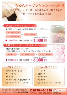 ◆◇◆BR.セドナヒーリングサロン甲子園店オープニングキャンペーン◆◇◆