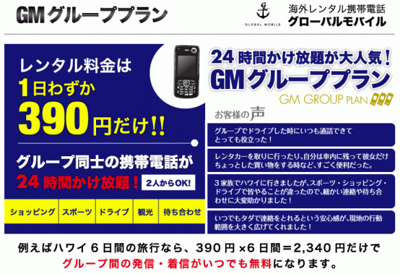 プライベート旅行、業務出張、団体旅行、海外ウエディングなどで仲間同士いつでも連絡を取りあえるので、便利で安心です。(対象エリア:ハワイ/アメリカ本土/グアム/オーストラリア)