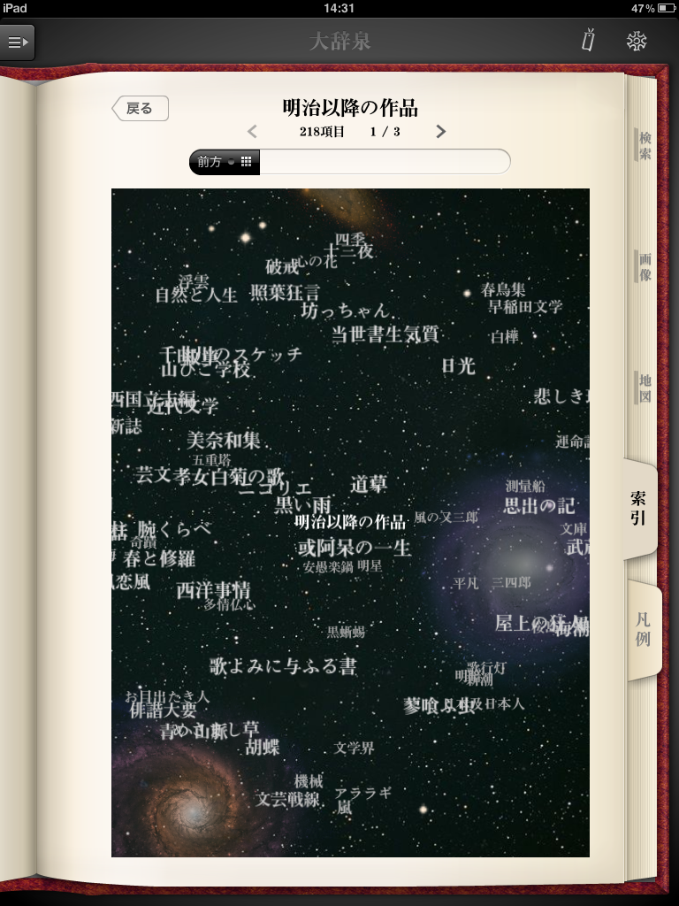 ・五十音順に前後の項目へ移動できるようにもなって、調べたい言葉とは別の言葉との「出会い」が増えることでしょう。