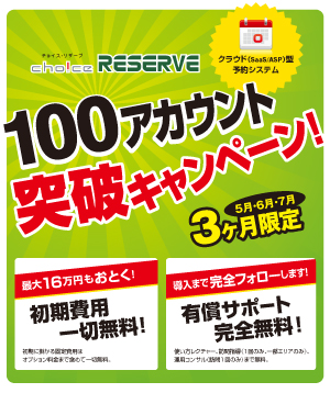 100アカウント突破を記念して初期費用及び有償サポートが無料になる「100アカウント突破キャンペーン」を実施いたします。
