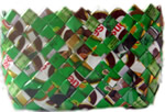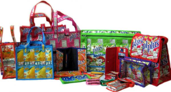 ゴミ廃棄の対象となる、お菓子やジュースなどのパッケージをバッグや小物として明るいデザイン性を保ちながら再利用された商品です。現地にて3支援団体が運営する、エコ再利用製品を取り扱い、フェアトレーディング、現地の雇用問題、地球環境問題にたいする1つの回答として、日本のみなさまへご使用をすすめて、諸問題に対する、再認識、支援の架け橋となる商品群となります。