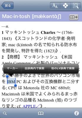 ●本文中の用語をなぞることで次々に辞書引きができるジャンプ検索機能。(*要iOS3.2以降)