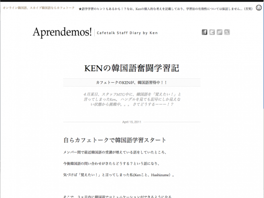 ◆ Staff 『Kenの韓国語奮闘学習記』について