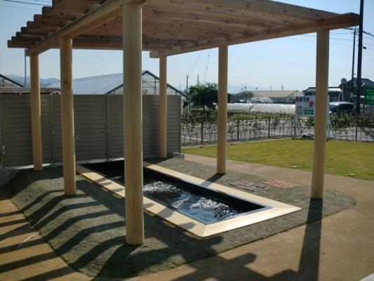 この度、足湯施設を新設した場所は、当初は駐車場にする予定のスペースでしたが、利用者や職員皆で楽しめることは無いかと考えた末、広い施設を活かすなら足湯だろうという意見がきっかけで設置に至りました。
