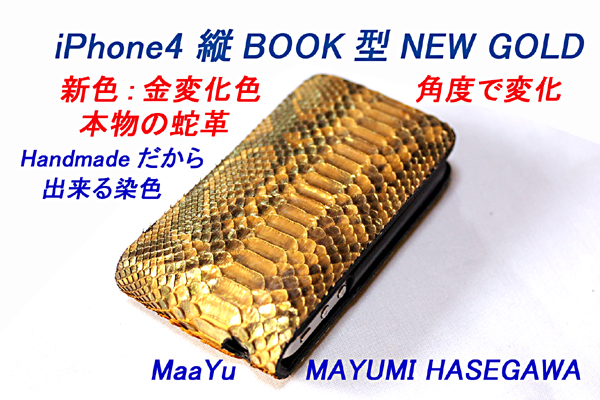 ■商品名:iPhone4たて開き本蛇革ケース(NEWGOLD)(日本製)