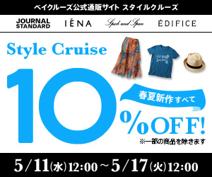 JOURNAL STANDARD、Spick and Span、IENA、EDIFICEなど計24ブランドの商品が、期間中、全て10%OFFとなるネット通販限定のイベントです。この機会にぜひスタイルクルーズでのショッピングをお楽しみください。