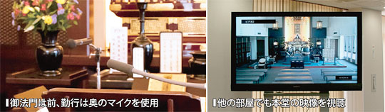 また、人の集まる部屋では本堂の法要の映像も観られるように、館内配信や録画による視聴を可能にしました。
