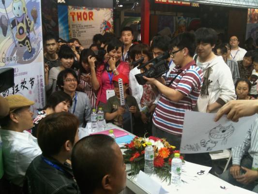 今回の「日中漫画家交流会」の会場になった、PANDA電子出版社のブースですが、