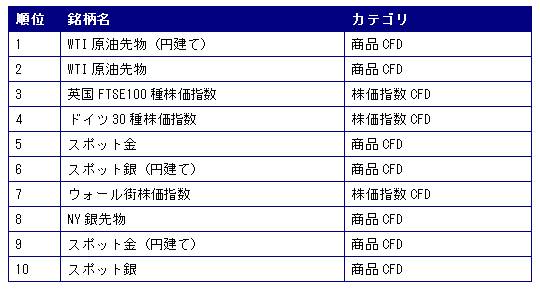 2011年4月度CFD取引額ランキングは次の通りです。