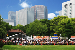 春の風物詩・ドイツビール祭り『日比谷オクトーバーフェスト 2011 』のシチュエーションは、ご期待ください。ビール好きにはたまらない ! 新緑オープンエアーとなります。
