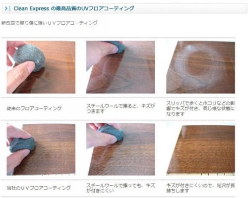 CleanExpress株式会社は、以前より展開していた重厚な上質仕上がりが可能なUVフロアコーティングに国内床材フローリングメーカーとの共同開発により改良を加え開発した、擦り傷に強いUVフロアコーティング30年保障【UVフロアコートEco】(http://osouji2525.com/02coating/04_2.html)の販売を2011年5月10日に、開始いたしました。