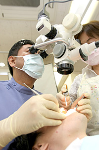 ところが、残念ながらわが国では現在、顕微鏡を用いた歯科治療はまだ十分に普及しているとはいえないのが現状です。歯科用顕微鏡の普及 率がまだ数%程度に留まることに加え、顕微鏡を持ってはいても使いこなせない歯科医師も少なくありません。さらには、ただ顕微鏡を置いているだけであたか も優良歯科医院であるかのごとく振る舞う歯科医師も少なからず存在し、およそ患者に正しい情報が行き渡っているとはいえない状況なのです。