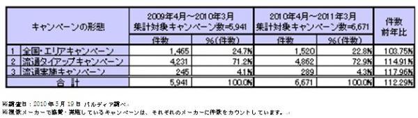 1.2010年度の店頭広告キャンペーンの数は6,671件,前年度の5,941件に対して112%に増加。