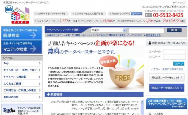 キャン索は2004年度以降の日本国内の店頭広告キャンペーンデータを2万5,000件収録しており、2010年7月からはキャンペーン情報を一部無料で開放しています。