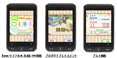 『ananウフフなOL生活』は、メインターゲットでもあるOL層に圧倒的なプレゼンスを誇る人気女性誌「anan」との連携ゲームで、プレイヤーは入社したての新米OLとなって、日常生活の様々な出来事を体験して楽しむOL生活体験ゲームです。制作協力としてカメラ資材メーカ国内大手のハクバ写真産業株式会社の参加により、プロダクトプレイスメント(ゲームアド)を実施しており、コンテンツ提供料だけに頼らない新しい収益モデルも確立しております。