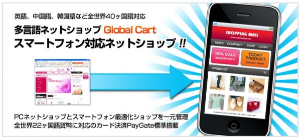 スマートフォン対応ネットショップが月額7,350円。多言語対応のGlobalCart。PC用ネットショップとスマートフォン向けネットショップを一つの管理画面から一元管理ができます。