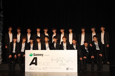 プロデューサーに、東方神起やBoAを発掘し育て上げたKim Kyung-Wook:キム・ギョンウク氏(SMエンターテイメント元社長、現在はGolden Goose ENTERTAINMENT 代表理事を勤める)を迎え、KIM氏と彼のクルーによる厳しいレッスンと数々のオーディション審査よりキャスティングされた精鋭達によって構成された平均身長185cmの21名によるエンターテイメントグループが「Apeace」です。約1年前に結成され、1日10時間に及ぶレッスンを積み、選抜されたメンバーが実力、人気、個性に応じ、1グループ7名、全3グループで恵比寿ガーデンプレイス「K THEATER TOKYO」でロングラン公演を行います。