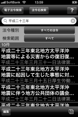 ●無償で提供されている iPhone 版『電子法令検索』が必要です。