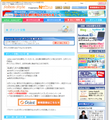 今回、株式会会社ナビットの運営する「sohos-style」では、国内最大規模のポイント交換サービス「Gポイント」を運営するジー・プラン株式会社(本社:東京都千代田区 代表取締役社長 金子 毅)と会員の相互乗り入れを開始すると同時に今までのポイント清算に加え、sohos-styleポイントから「Gポイント」への交換も開始しました。