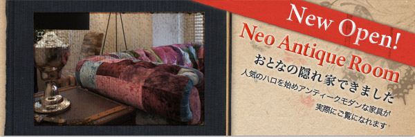 『ネオアンティークルーム』はアンティークテイスト、ヴィンテージテイストの家具でコーディネートした予約制ショールームです。